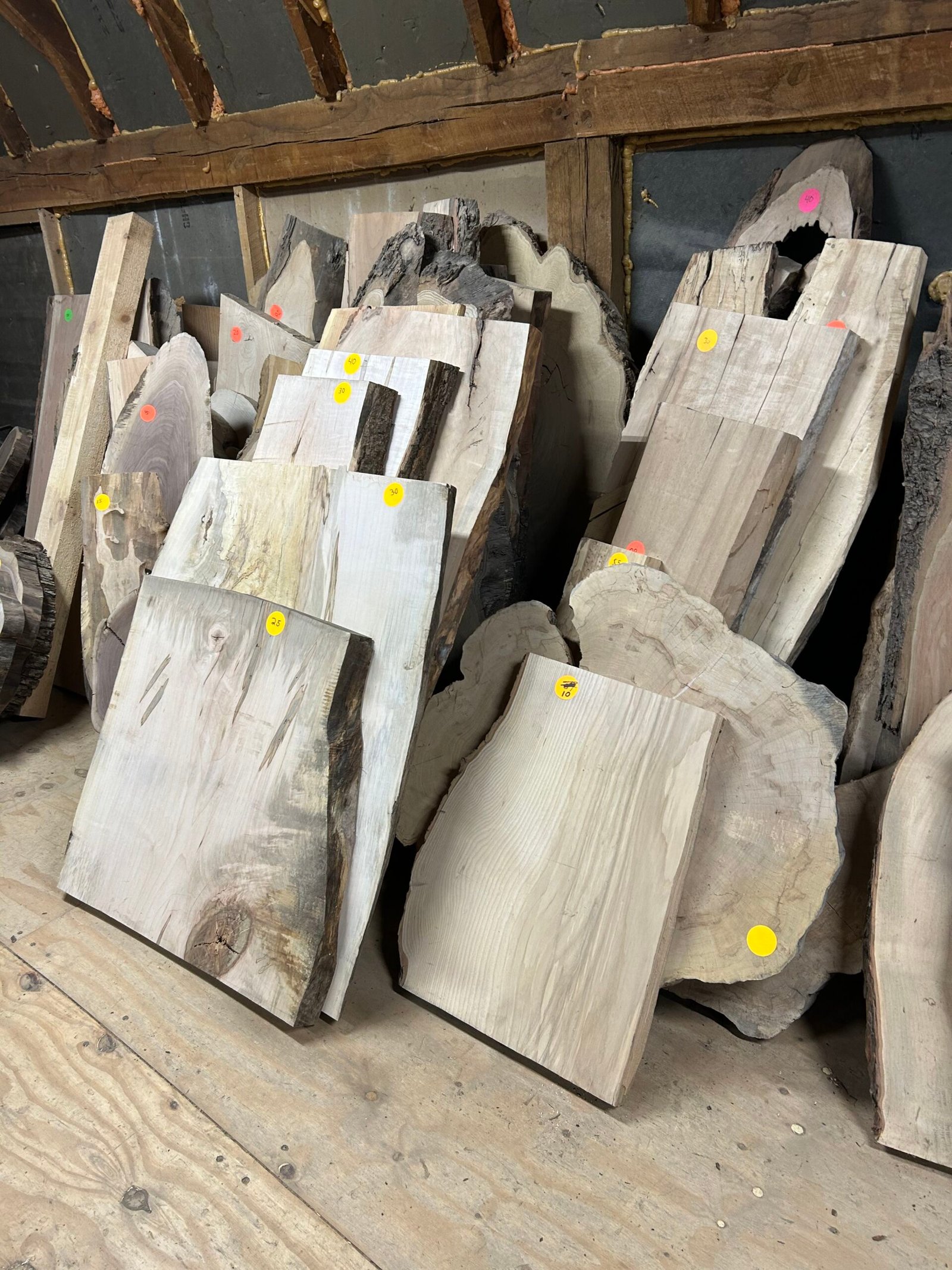 Natural hardwood slab sections ideal for custom shelves, side tables, charcuterie boards, and creative woodworking projects.