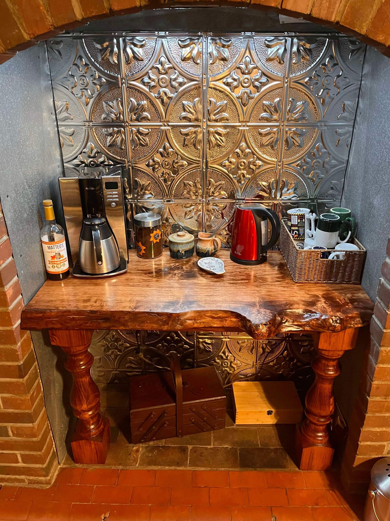 This rustic live edge console table blends traditional craftsmanship with organic wood character. The solid hardwood slab preserves its natural contours and grain movement, while the turned wooden legs add timeless elegance and structural strength. Perfect for coffee stations, entryways, fireplace nooks, or accent spaces, this piece brings warmth, texture, and authentic charm to both residential and cabin-style interiors.